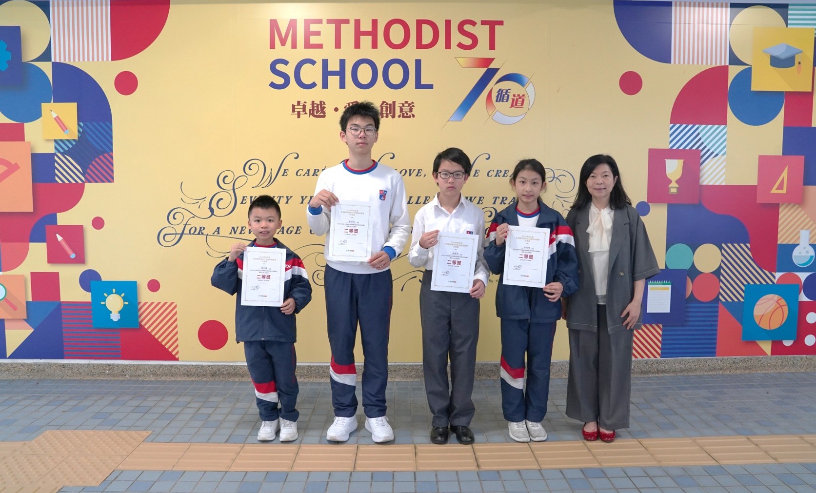 1B楊友謙(小學一年級組_二等獎) 5A黃博聞, 5A鄧雨晞(小學五年級組_二等獎) 6B何承軒,6C易尚恩(小學六年級組_二等獎)